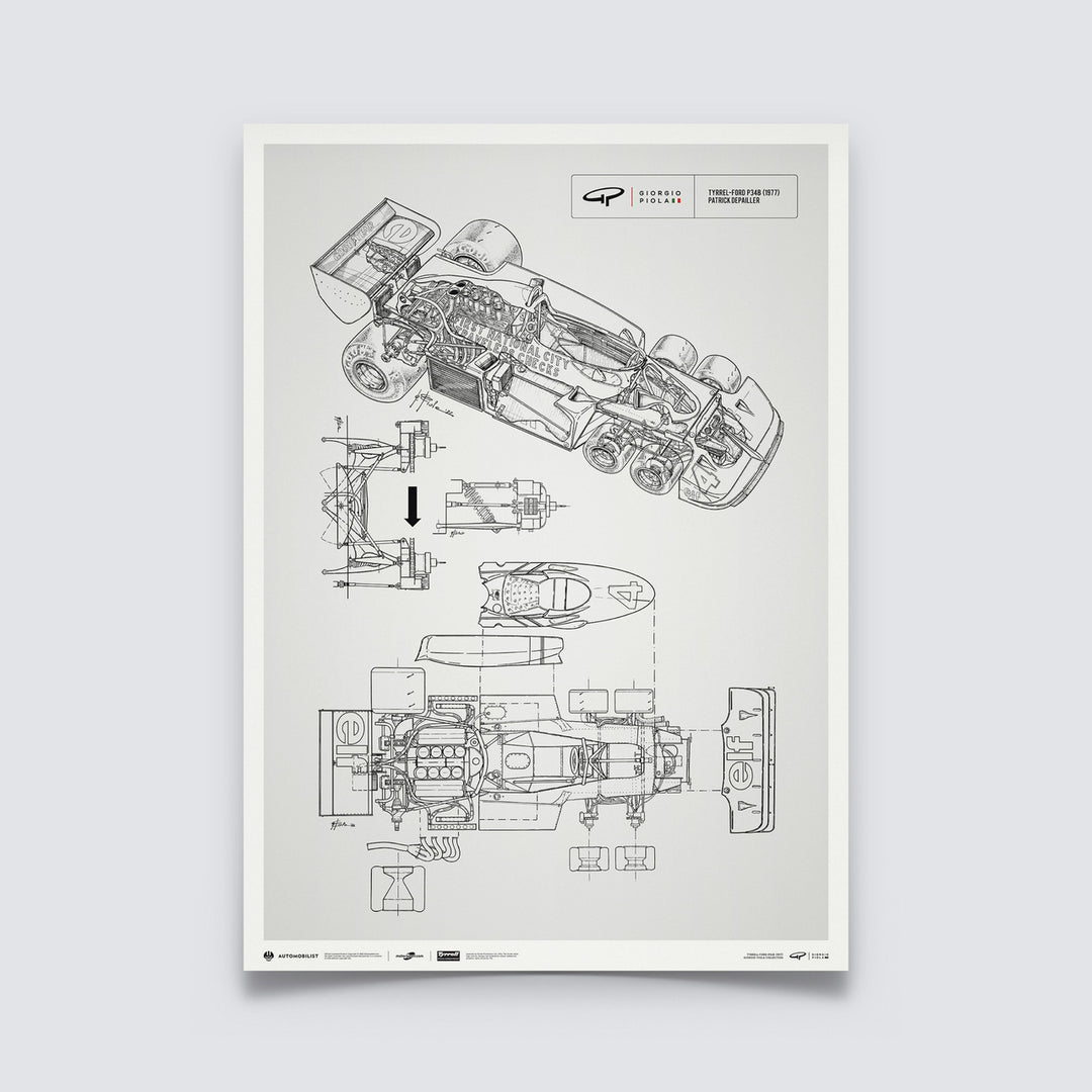 Giorgio Piola Technical Drawing - Tyrrell P34B - 1977 - Unlimited Poster